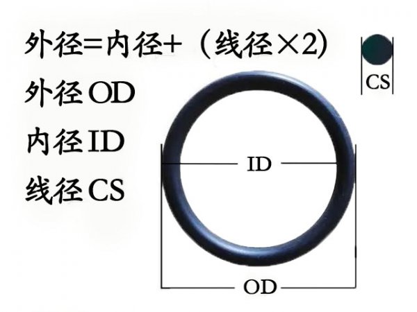 o型密封圈尺寸测量表示方法:外径、内径、线径(如下图)